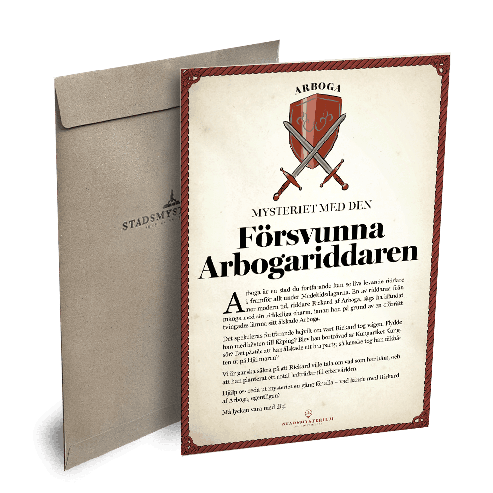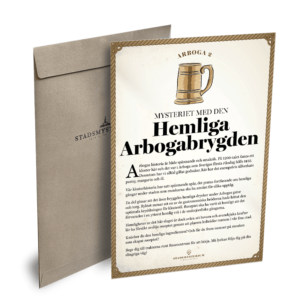 STADSMYSTERIUM® är en promenadaktivitet där man letar ledtrådar och svarar på frågor. Promenaden är utomhus i stadsmiljö bland gator och torg och tar cirka en timma. Avsluta gärna med att lösa mysteriet över en fika.