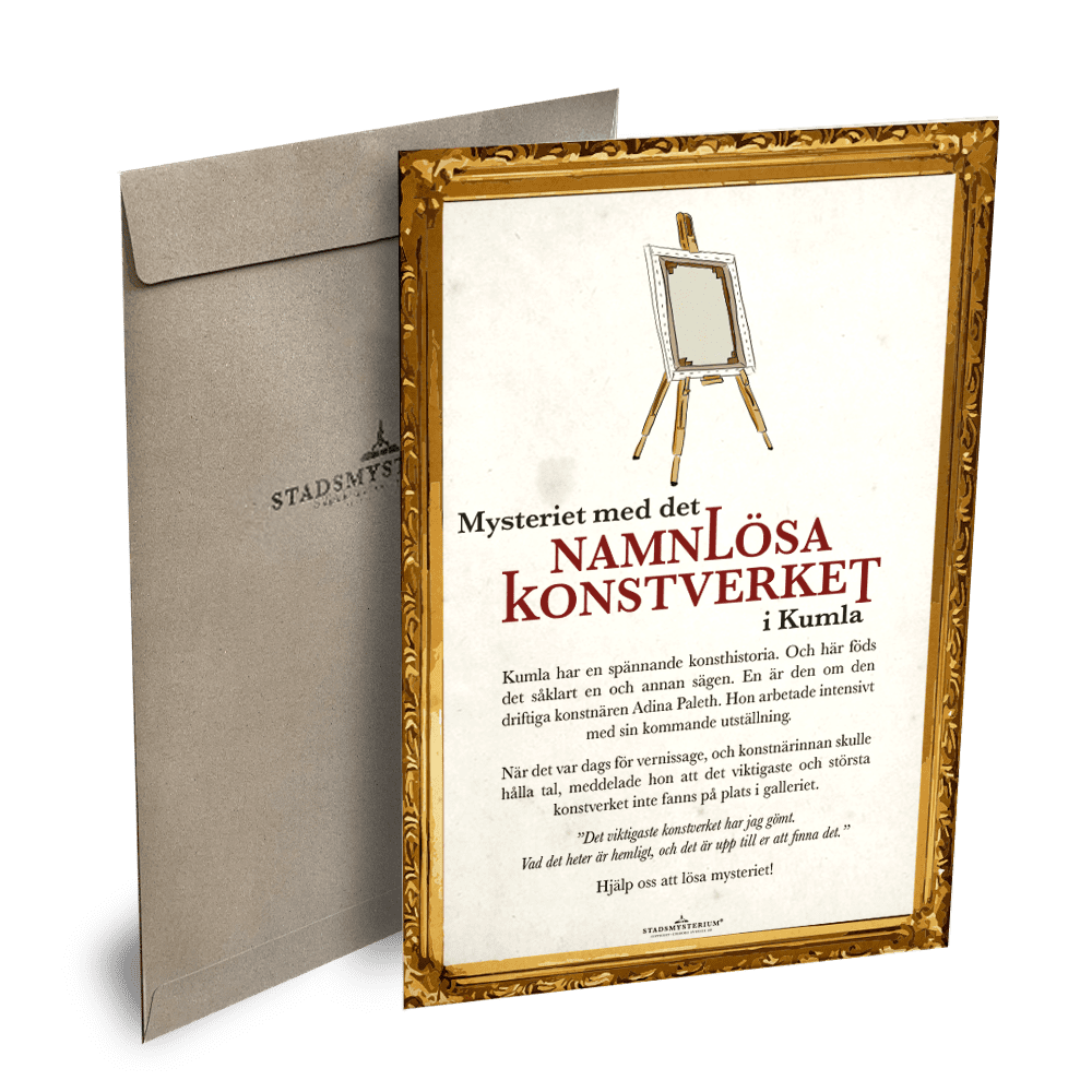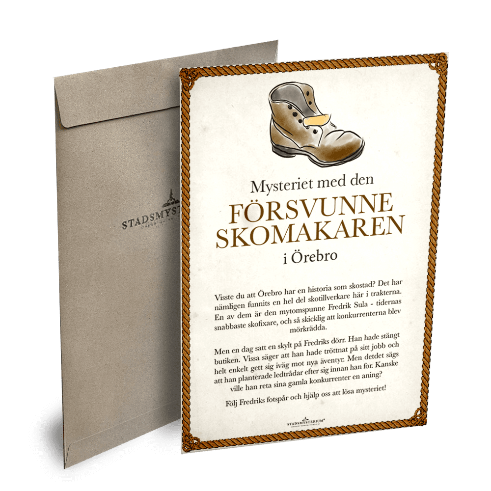 STADSMYSTERIUM® är en promenadaktivitet där man letar ledtrådar och svarar på frågor. Promenaden är utomhus i stadsmiljö bland gator och torg och tar cirka en timma. Avsluta gärna med att lösa mysteriet över en fika.