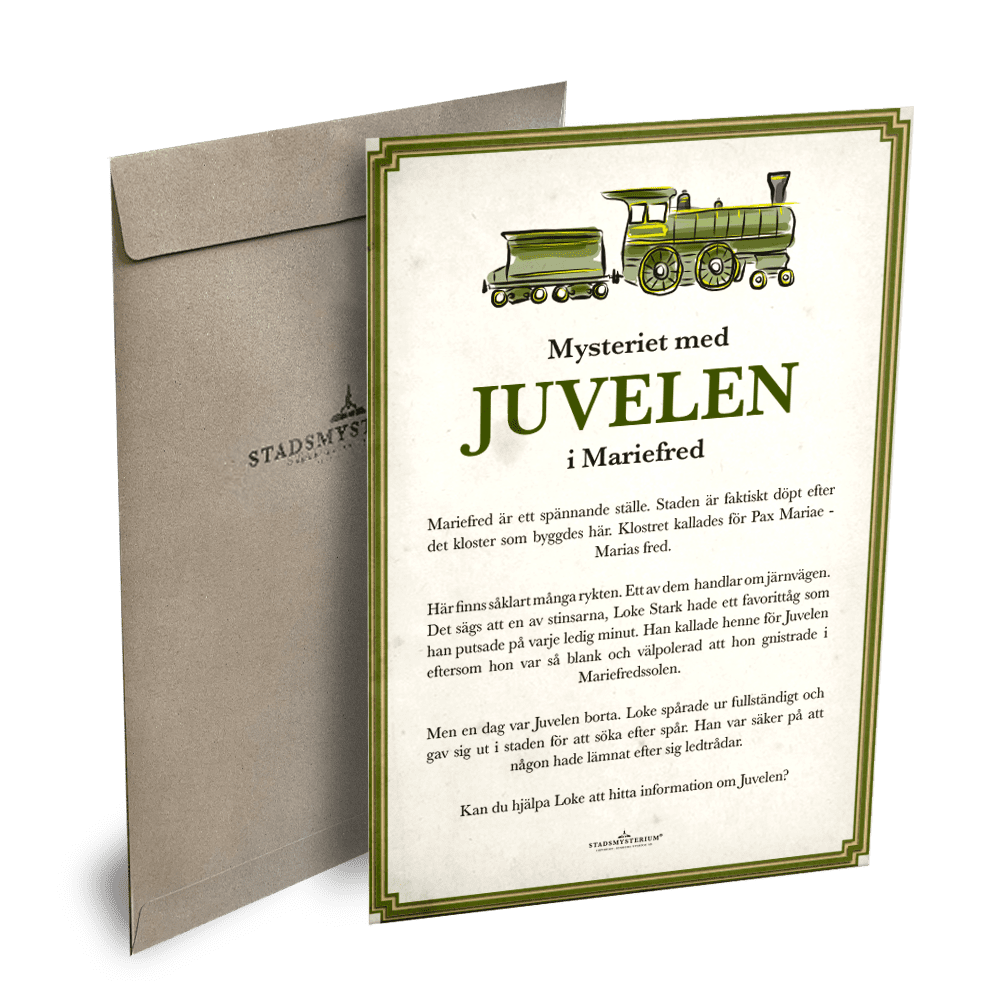 Vissa Stadsmysterium finns också för mobilen. Samma upplägg men inga väntetider med post! När du beställt får du ett mail med en länk. Klicka för att börja spela. Ni fyller i svaren med mobilens tangentbord. Karta finns om du irrar bort dig.