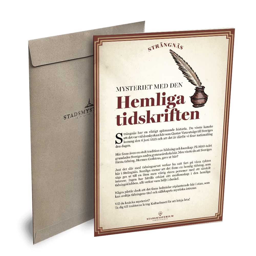 Pappersversionen av mysteriet består av en folder i kuvert. Du löser det när det passar. Glöm inte penna!