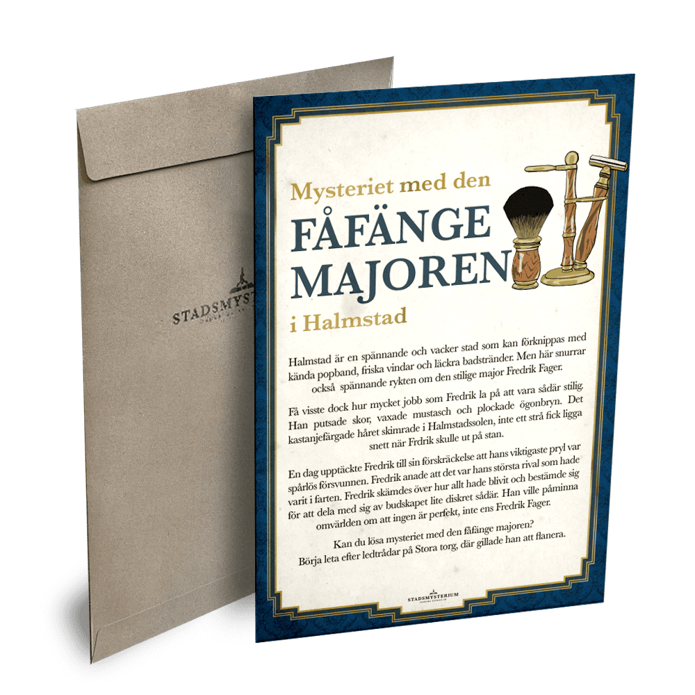STADSMYSTERIUM® är en promenadaktivitet där man letar ledtrådar och svarar på frågor. Promenaden är utomhus i stadsmiljö bland gator och torg och tar cirka en timma. Avsluta gärna med att lösa mysteriet över en fika.