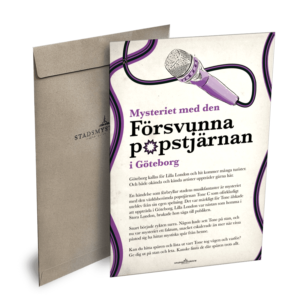 STADSMYSTERIUM® är en promenadaktivitet där man letar ledtrådar och svarar på frågor. Promenaden är utomhus i stadsmiljö bland gator och torg och tar cirka en timma. Avsluta gärna med att lösa mysteriet över en fika.