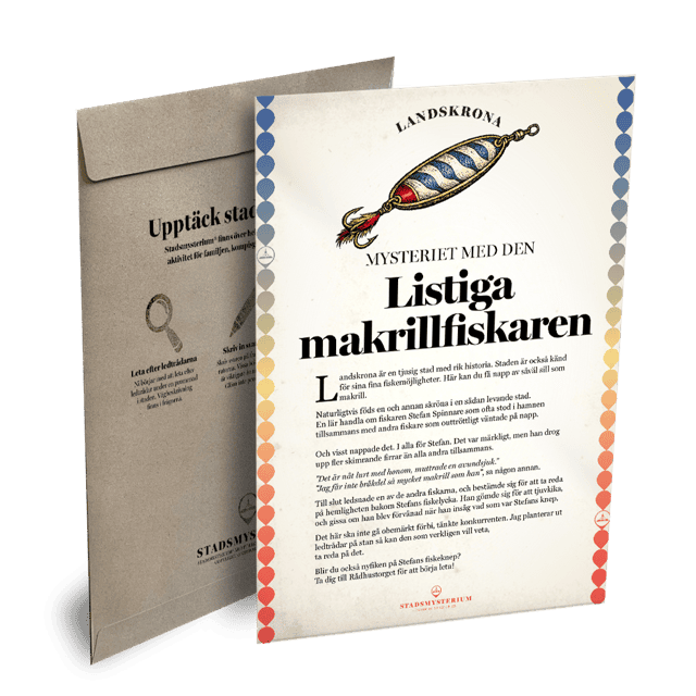 STADSMYSTERIUM® är en promenadaktivitet där man letar ledtrådar och svarar på frågor. Promenaden är utomhus i stadsmiljö bland gator och torg och tar cirka en timma. Avsluta gärna med att lösa mysteriet över en fika.