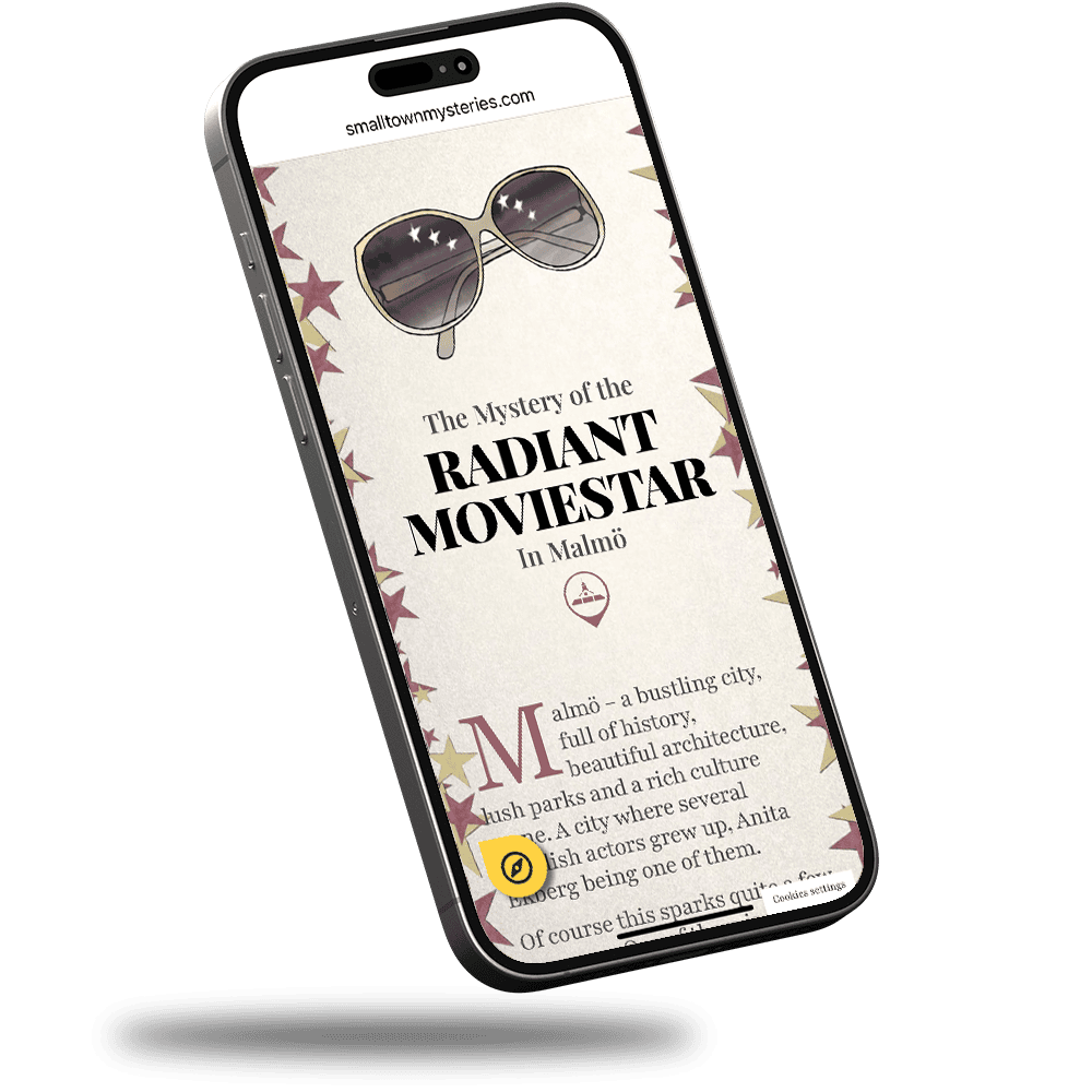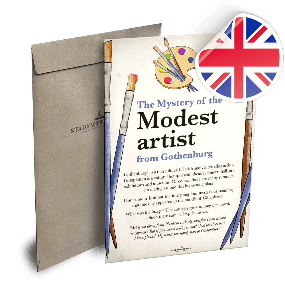STADSMYSTERIUMŸ Àr en promenadaktivitet dÀr man letar ledtrÄdar och svarar pÄ frÄgor. Promenaden Àr utomhus i stadsmiljö bland gator och torg och tar cirka en timma. Avsluta gÀrna med att lösa mysteriet över en fika.