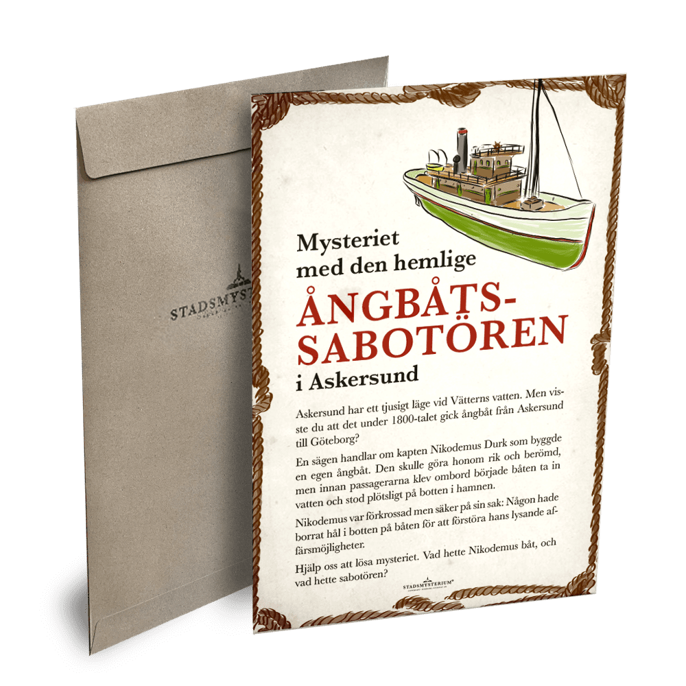 STADSMYSTERIUM® är en promenadaktivitet där man letar ledtrådar och svarar på frågor. Promenaden är utomhus i stadsmiljö bland gator och torg och tar cirka en timma. Avsluta gärna med att lösa mysteriet över en fika.