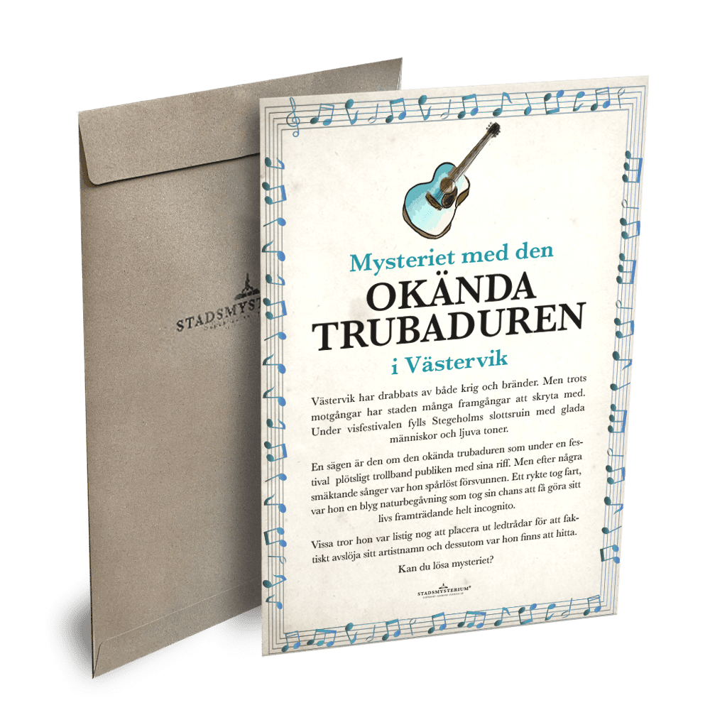 STADSMYSTERIUM® är en promenadaktivitet där man letar ledtrådar och svarar på frågor. Promenaden är utomhus i stadsmiljö bland gator och torg och tar cirka en timma. Avsluta gärna med att lösa mysteriet över en fika.
